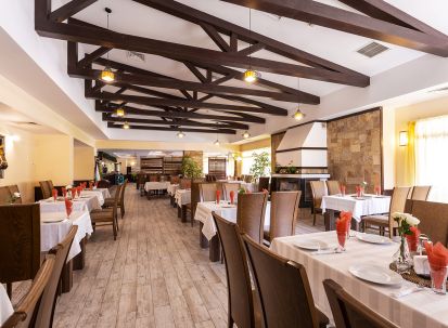 Ресторантът е със 150 места и разполага с барбекю, чеверме и пещ. В менюто присъстват вкусни ястия от европейската и българска кулинарна класика, подбрани местни специалитети и богат избор от вина. Просторната тераса открива прекрасна гледка към планината.
