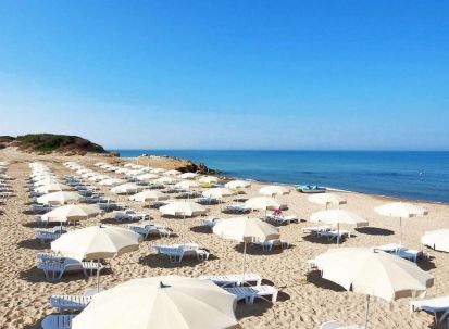 Плажът е на 9-10 мин с безплатен трансфер, по време на висок сезон на всеки 10-15 минути от 9:00 до 19:00 ч. без прекъсване за обедна пауза. По време на нисък сезон на всеки 20-30 мин от 9:00 до 19:00 ч. с прекъсване за обедна пауза.