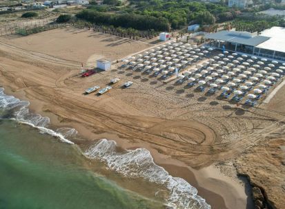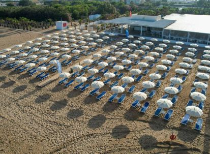 Плажът е оборудван с чадъри и шезлонги, които се ползват безплатно от гостите на хотела по 1 чадър и 2 шезлонга на стая до изчерпване на количеството, душове и тоалетни. Има бар срещу заплащане и ресторант, където може да си ползват обяда безплатно при предварителна резервация от предходния ден. Има игрища за различни игри - волейбол, футбол, тенис.