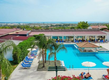 Athena Resort 4*, се състои от основна сграда, където се намират ресторанта и лобито, и малки къщички и вили.