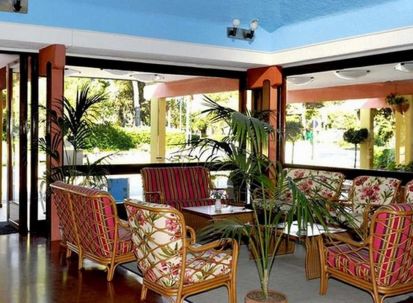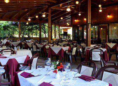 Ресторантът е открит от 3 страни, с изглед към градините и пищната зелена гора. Отворен за закуска, обяд и вечеря, ресторантът е специализиран в южната италианска кухня.