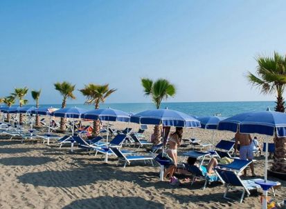 Плажната ивица се разпростира на 340 м и се намира на 50м. oт селището. Достъпът до плажа е свободен, където за всяко помещение за настаняване има чадър и шезлонг.Кафенето, баните и душовете са в близост до плажа. Спасителите са на плажа по цял ден за безопасността на гостите.