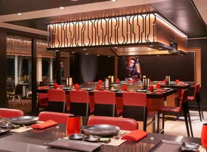 2 основни ресторанта, ресторант с отворен бюфет, бар и грил на басейна, Лос Лобос кантина с мексиканска храна, Тепаняки японски ресторант, Стек хаус, Бразилска Чураскария, Италиански ресторант La Cucina, Френски ресторант Ле Бистро, Суши бар.