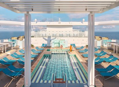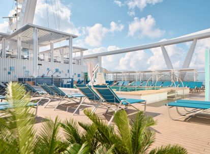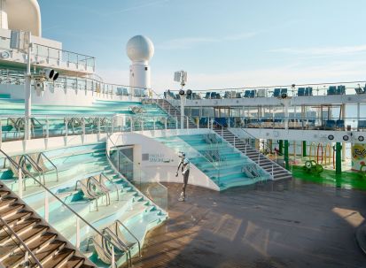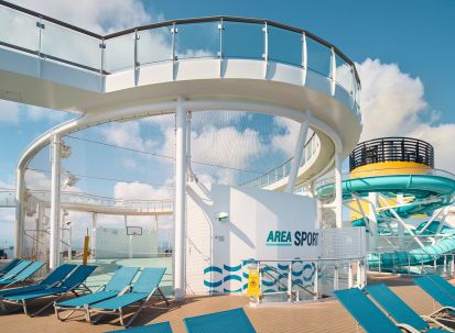 Отпуснете се на шезлонгите около басейните на откритата палуба или посетете пързалките на аквапарка.