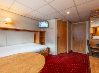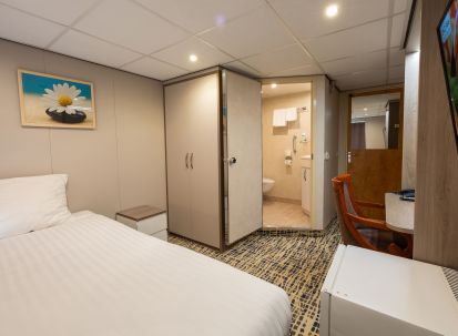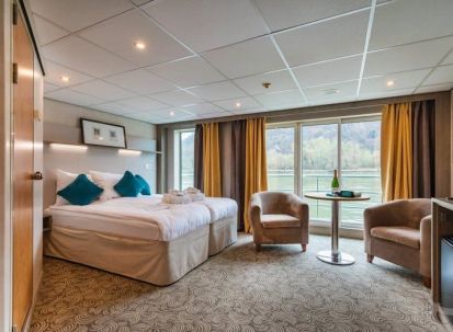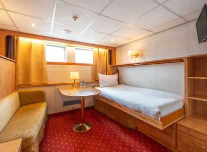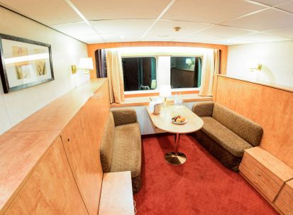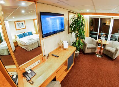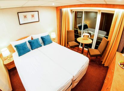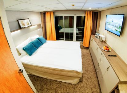 На долна и средна палуба има каюти с прозорец, който не се отваря. На средна и горна палуба са разположени каюти с големи френски прозорци, които се отварят (плъзгащи се). Каютите са около 14 кв. м. и са оборудвани с климатик, телевизор, телефон, сешоар, сейф. Суитите са около 21 кв. м. и имат още минибар и кафемашина.