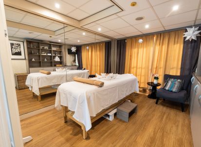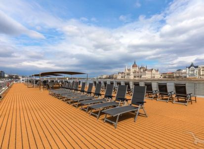 Най-горната четвърта палуба е открита с шезлонги, бар и фитнес зона.