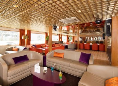 Рецепцията и бара също се намират на горната палуба.