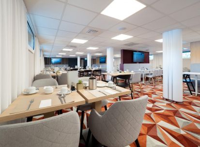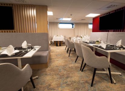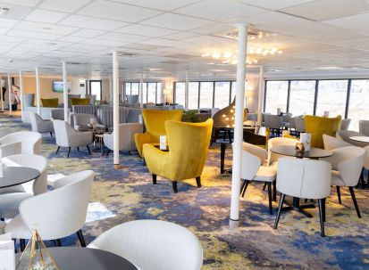 На борда ще намерите панорамен салон с бар, бар на кърмата, ресторант на основна палуба, голяма слънчева палуба с места за сядане, асансьор.