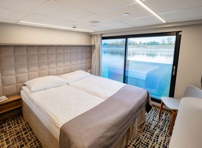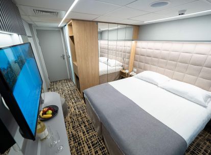 Каютите на средна и горна палуба са с площ от 14 м2 и големи френски отварящи се прозорци.