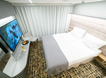 Всички каюти са с индивидуален климатик, сателитна телевизия, вътрешен телефон, мини бар, сешоар, сейф.
