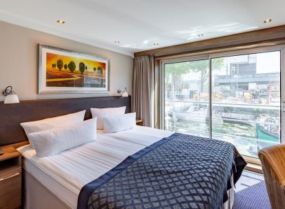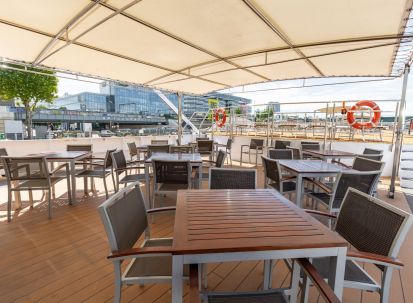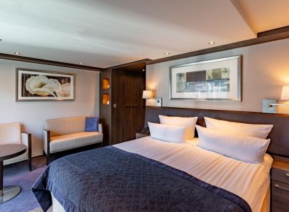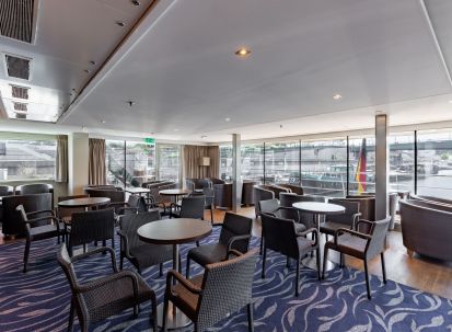 Горна палуба има 24 каюти и 4 суити с панорамни френски прозорци.