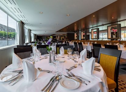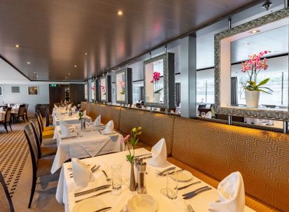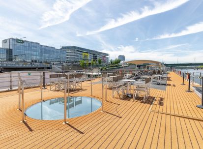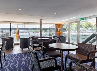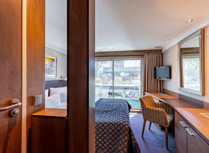 Средна палуба има 30 каюти с панорамни френски прозорци