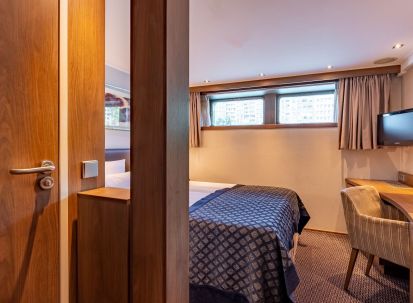 Основна палуба има 11 каюти с прозорец, който не се отваря.
