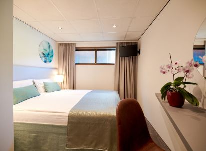 Каютите са с площ от 12 м2 и разполагат с индивидуален климатик, сателитна ТВ, сешоар, сейф, баня и тоалетна.
