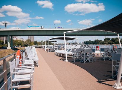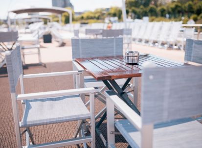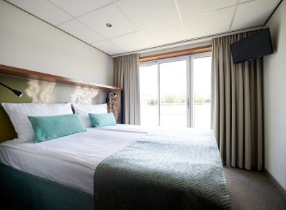 Каютите на горната палуба имат големи френски прозорци, които се отварят.