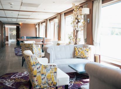 На разположение на гостите са ресторант, бар, библиотека, безжичен интернет срещу заплащане. Корабът разполага с 3 палуби с каюти, които са свързани с асансьор и слънчева тераса със шезлонги. Капацитетът е 192 гости. Реновиран е през 2022 г.
