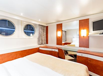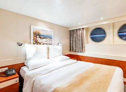 Каютите са с площ от 14 м2 и разполагат с индивидуален климатик, сателитна ТВ, сешоар, сейф, малък хладилник, баня и тоалетна.