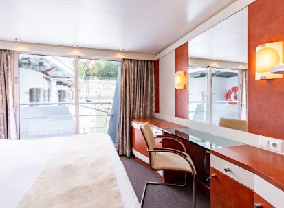 35 каюти на горната палуба имат големи френски прозорци, които се отварят.