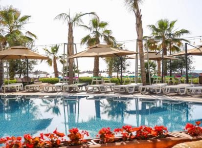- Ha плaжa нa xoтeлa ca ocигypeни шeзлoнги, дyшoвe и чaдъpи;