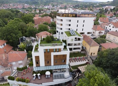 На покрива можете да се насладите на почивка на панорамната тераса, предоставяща на гостите на комплекса удобни дивани и шезлонги.