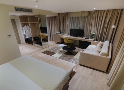 Хотелът предлага разнообразие от луксозни стаи и суити с изглед към морето или градината. Всички помещения са оборудвани с климатик, безплатен Wi-Fi, телевизор с плосък екран, минибар, сейф и балкон. Баните са модерни, с душ кабина или вана, сешоар и безплатни тоалетни принадлежности.