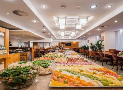 - Закуската е на богат бюфет, включваща пресни плодове, месни и млечни продукти, сладкиши, яйца, зърнени и горещи напитки ;