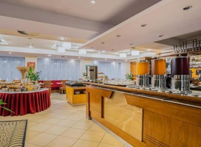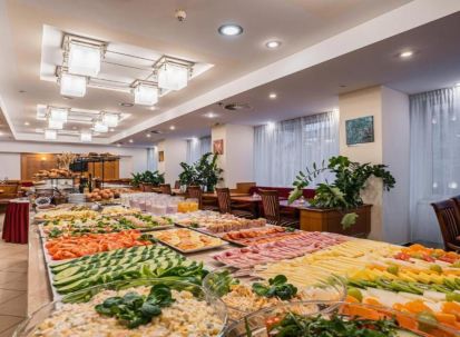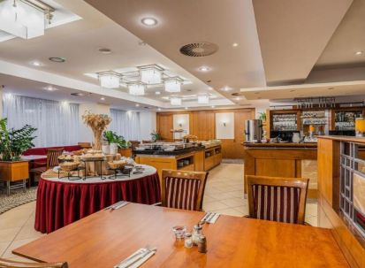 - Хотелът предлага ресторант Symphony, където се сервират чешка и международна кухня – закуска, обяд и вечеря;