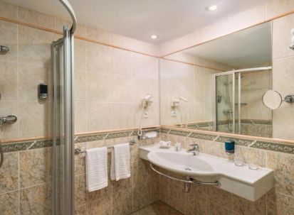 - Баните са уютни, оборудвани с душ или вана, луксозни тоалетни принадлежности и сешоар, някои с rain shower;
