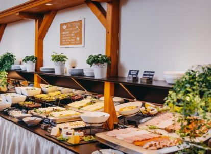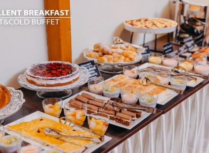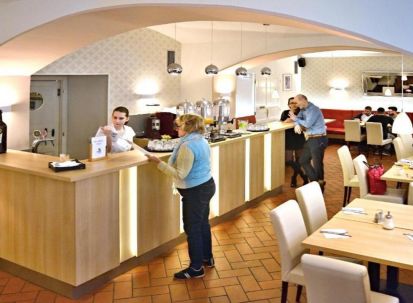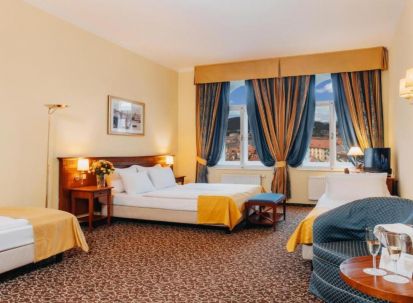 Ресторантът на хотела сервира изобилна закуска на шведска маса всяка сутрин, включваща както топли и студени ястия, така и традиционни чешки печива и напитки.