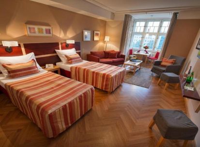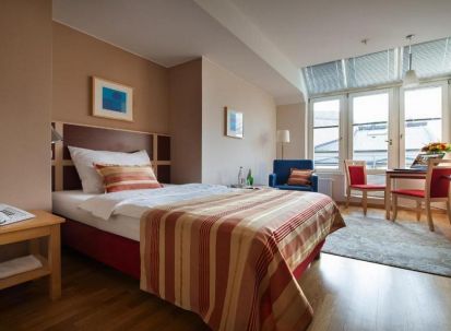 Хотелът разполага с просторни, модерно обзаведени стаи, с дървен под и килими. Големите стаи разполагат с малка, модерно обзаведена кухня. Помещенията разкриват гледки към града и площад Wenceslas, а стаите разположени на по-високите етажи, разкриват гледка към Пражкият замък и хълм Петрин.