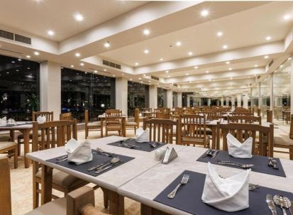 - Основен ресторант – интернационален бюфет с разнообразие от салати, меса, вегетариански опции и тематични вечери