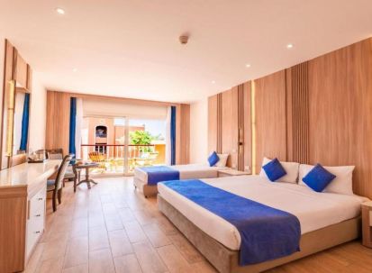 Разполага със спалня или две отделни легла, баня с душ или вана, балкон или тераса с изглед към градината, басейна или морето, климатик, сейф, минибар, сателитна телевизия, телефон, електрическа кана за чай и кафе, сешоар.