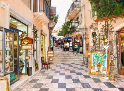 Посещение на Таормина - Aвтобусът ни оставя на паркинг в подножието на града, откъдето се придвижваме до централната улица с безплатно бусче. Свободно време за разходка по живописните улички на града.