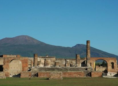 Вулканът Везувий, изригнал през 79 г., е разрушил някогашния процъфтяващ античен град, но вулканичната пепел е съхранила за потомците и до днес богатите домове с невероятни фрески и мозайки, термални комплекси, вили, храмове и театри. Посетителите могат да си представят как са живели в онази далечна императорска епоха. Съхранени са Храмът на Аполон, Базиликата, Форумът, пазарът, храмът на Веспасиан, храмът на Юпитер, термите, храмът на Фортуна Августа, термопилите, публичният дом, водопроводът, улицата на Изобилието, Големият театър, казармата на гладиаторите и много др. Връщане в хотела.
