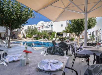 Хотелският комплекс се намира на 8 километра от столицата на остров Санторини – Фира, а летището е на 4 километра от хотела. Комплексът е изграден с цел да осигури максимална почивка и комфорт на своите гости и разполага с много удобства и модерни съоръжения. Комплексът е с концепция: