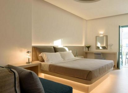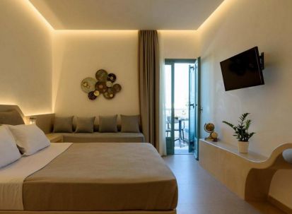 На 50 м от хотела може да намерите плаж, който има гладък черен пясък и е награден със син флаг. На същото разстояние можете да се насладите на живописни таверни или на космополитни нощни клубове с гледка към безкрайното море.