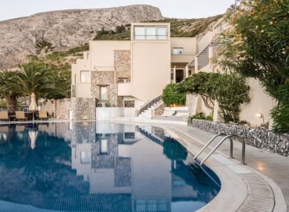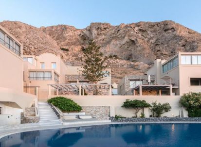 Разположен в сянката на Древна Тира, на тихо място на хълм, предлагащ прекрасна панорамна гледка към Камари и Егейско море,на 400м.от черния плаж Камари и в близост до алея с ресторанти, барове и магазини.