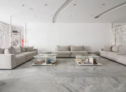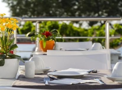 Ресторантът работи от обяд до късно вечер, предлагайки съвременна средиземноморска кухня.
