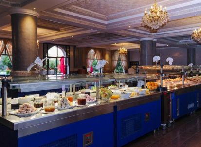 Закуска на шведска маса: предлага закуска на шведска маса с голямо разнообразие от топли и студени опции. Работно време: 07:00 - 10:30 всеки ден.
