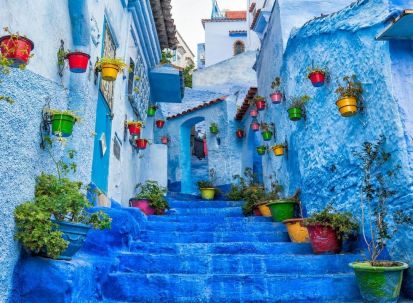 Отпътуване за най-синият град в Мароко - Шефшауен. Името Chef Chaouen идва от формата на планинските върхове над града, които изглеждат като два рога (chaoua) на коза (chef). Казват, че не си заслужава да отидеш в Мароко, ако не видиш Шефшауен. Градчето е сгушено в склоновете на планинската верига Риф - район, известен с отглеждането на хашиш. По-интересно е, че всичко наоколо е синьо. Облечете нещо подходящо за да изпъквате на приказния фон.