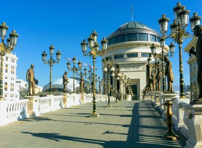 Отпътуване от София в 6.00 ч. от пл Сточна гара, пътуване по маршрут Гюешево - Скопие-Охрид. Пристигане в Скопие около обяд - пешеходна разходка за разглеждане на столицата на РСМ с местен екскурзовод: площад "Македония" с паметника "Воин на кон", Триумфалната арка, домът музей на Майка Тереза, Каменният мост – символ на града, паметникът на Филип Македонски, старият квартал Вароша – скопската чаршия, църквата "Св. Спас" със саркофага на Гоце Делчев. Свободно време за обяд. Продължаване посока Охрид, настаняване в хотел , вечеря, нощувка.