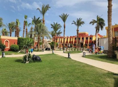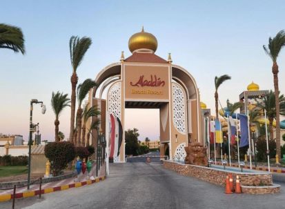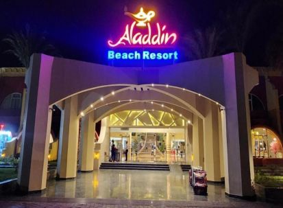 Aladdin Beach Resort 4* се намира на самия бряг на Червено море, в курортната зона на Хургада. Разположен е на около 8–12 км от международното летище и на приблизително 15 км от центъра на града. Хотелът е част от комплекс заедно с съседните Jasmine Village и Ali Baba Palace, с които споделя определени удобства.