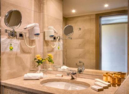 Спалня или 2 отделни легла, баня с душ, балкон с изглед градина, сейф, минибар, който се зарежда ежедневно с минерална вода, безалкохолните напитки се зареждат веднъж на престой при пристигане, сателитна телевизия, 24-часов рум сервиз (допълнително заплащане), електрическа кана за приготвяне на чай и кафе, сешоар.