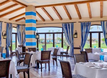 Jaz Almaza Beach, един от най-луксозните курорти на египетското крайбрежие в Almaza Bay, само на 45 км от летището в Мерса Матрух. Със своята прекрасна локация на първа линия и невероятни удобства, този 5-звезден хотел е идеалното място за спокойна и луксозна почивка, подходящ както за семейства, така и за двойки, които търсят истинска релаксация и приключение.