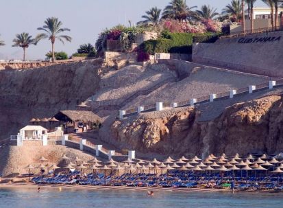Jaz Fanara Resort 5* Най-романтичния хотел с най-красивия риф. Ползва се предимно от туристи-дайвъри. Много луксозен с богата анимация от веригата на Magic World с невероятна гледка към националния парк Рас Мохамед. В близост са култовото кафе Farsha и рибния ресторант Fares. Хотелът е с висок бряг, каскадно разположен. На територията на хотела има няколко бара-плажен, pool bar, два ресторанта-един основен и един А ла Карт с италианска кухня, детски кът,няколко басейна-два, от които (един детски и един за възрастни) отопляеми през зимата. Предлагат се стандартни, супериорни и фамилни стаи предимно с гледка градина и басейн. Безплатен WiFi само на рецепция. Плажът е малък,но рифът е на самия плаж.