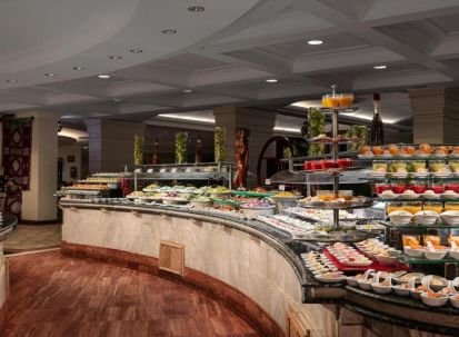 Основният ресторант предлага закуска, обяд и вечеря на блок маса с интернационална кухня. Хотелът разполага и с няколко а ла карт ресторанта – гръцки, италиански, азиатски и ориенталски. Предварителна резервация е необходима за а ла карт ресторантите. Баровете в комплекса предлагат богато разнообразие от напитки и леки закуски през деня.