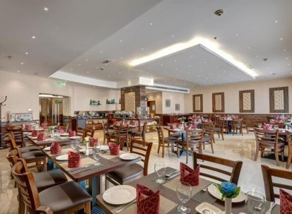 Основният ресторант сервира международна кухня, както на бюфет, така и ала карт. Закуската предлага богато разнообразие от топли и студени предложения. Лоби барът е идеално място за напитки, кафе, коктейли и леки закуски през деня.