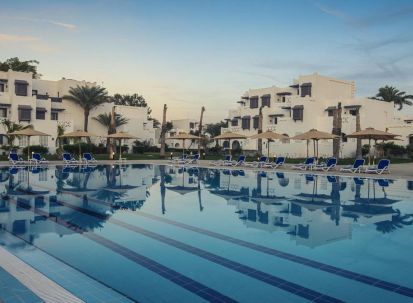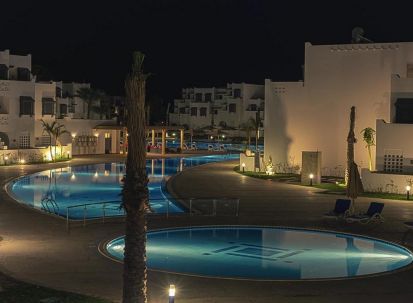 Намира се на 8 км. от летище Хургада, на 12 км. от центъра на Хургада, на брега на морето.