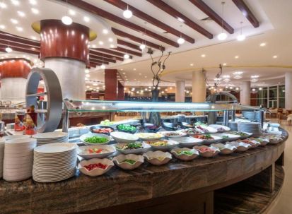 - Основен ресторант – международна кухня на бюфет с голямо разнообразие от ястия, тематични вечери и show cooking