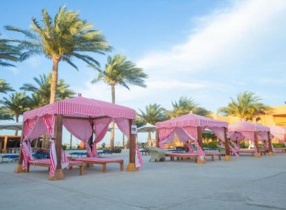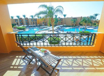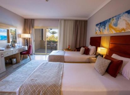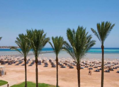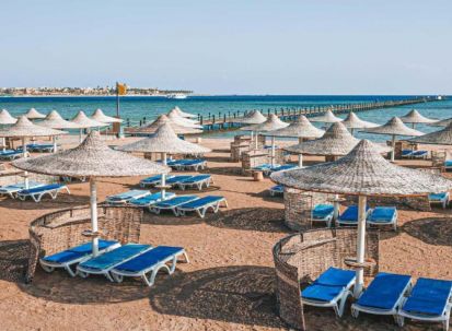 Stella Beach Resort се намира в красивия район Макади Бей, южно от Хургада. Разположен е директно на първа линия до частен пясъчен плаж с плитки води и коралови рифове – перфектен за плуване и шнорхелинг. Международното летище на Хургада е на около 35 км, а центърът на града – на около 40 км. Районът е спокоен, с луксозни курорти и отлични условия за почивка край морето.